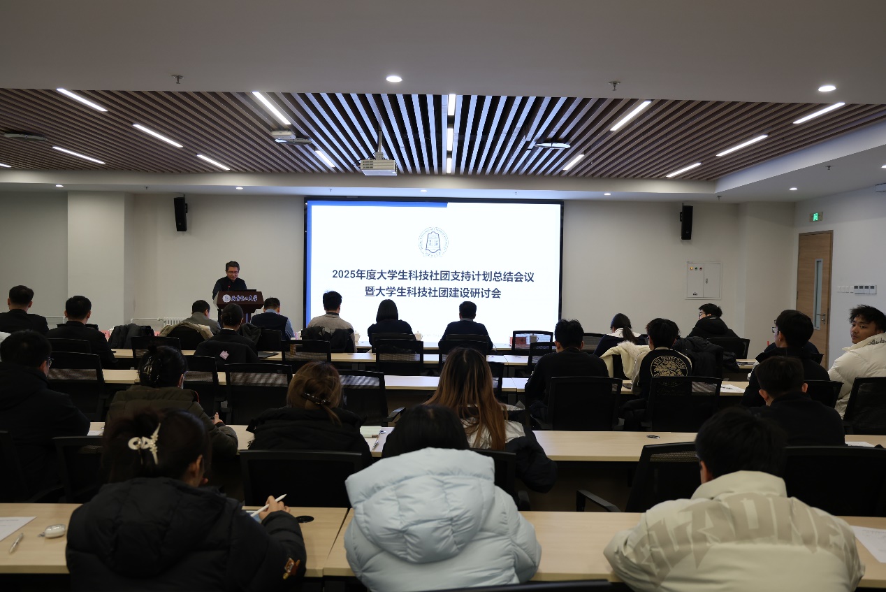 2025年12月12日下午,北京化工大学科协在朝阳校区高精尖中心702多功能厅组织召开“2025年度大学生科技社团支持计划总结会议暨大学生科技社团建设研讨会”。
